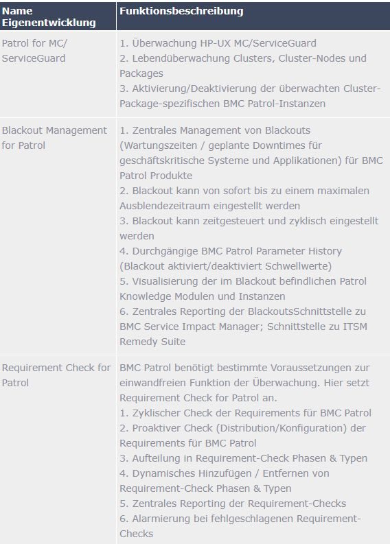 - Knowledge Module auf Basis der Patrol Script Language (PSL) und C++ Programmiersprachen